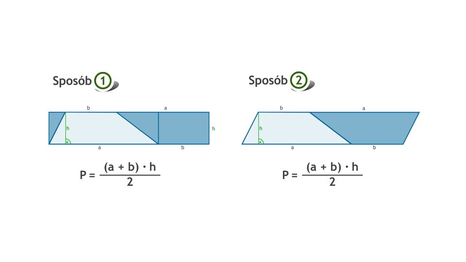 Animacja przedstawia i uzasadnia prawdziwość wzoru na pole trapezu.