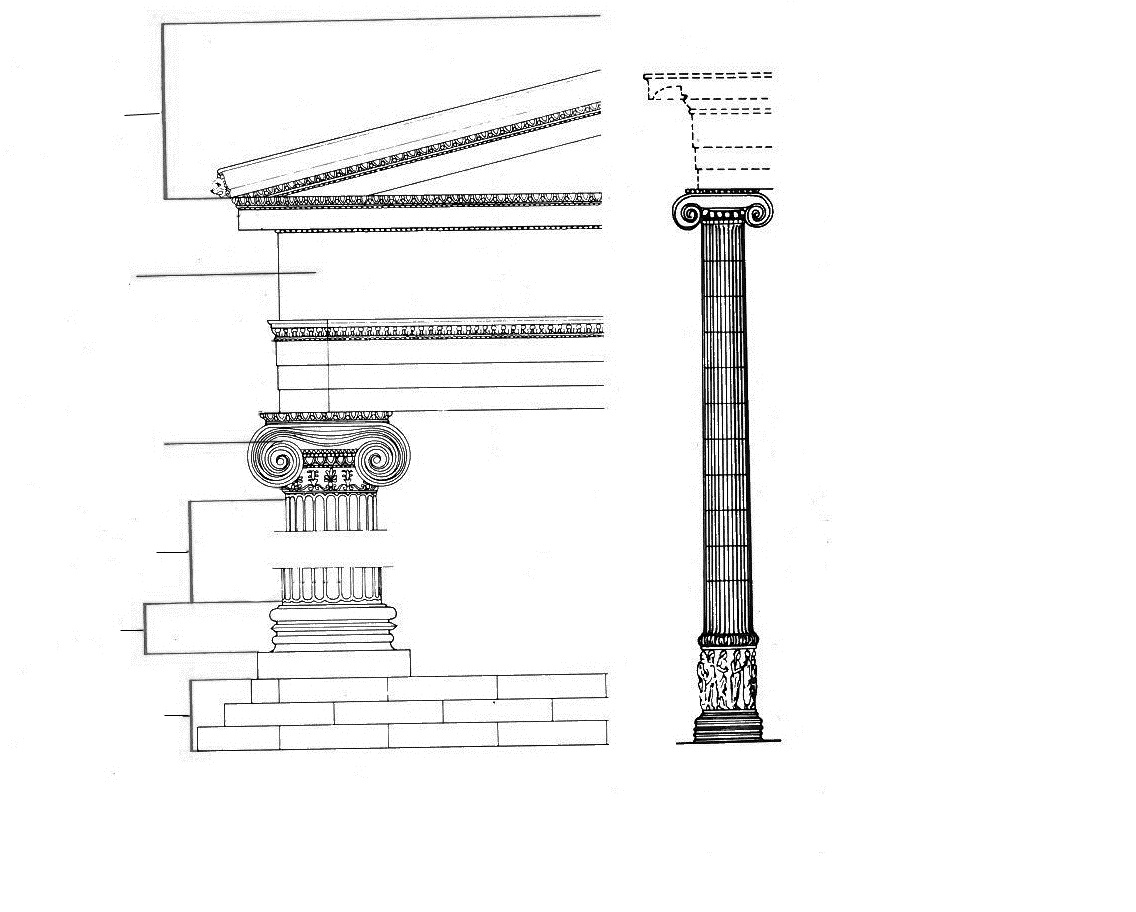 Wykształcają się tez dwa porządki architektoniczne: dorycki i joński. Zasadniczo składają się one z tych samych elementów: kolumn, belkowania i przyczółka z tympanonem. W obydwu porządkach trzony kolumn pokryte są żłobkami (kanelowaniem). Różnice między nimi widoczne są jednak nie tylko w odmiennych formach, ale także ich proporcjach.