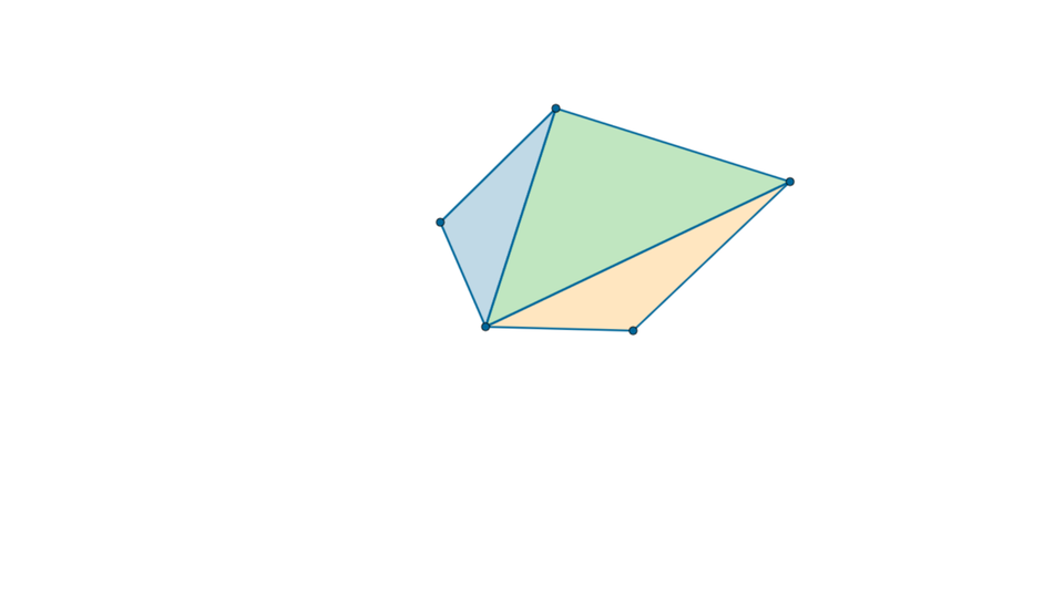 R13onagSJxXd6 1 Rysunek przedstawia pięciokąt podzielony na trzy trójkąty, które pokrywają cały wielokąt.