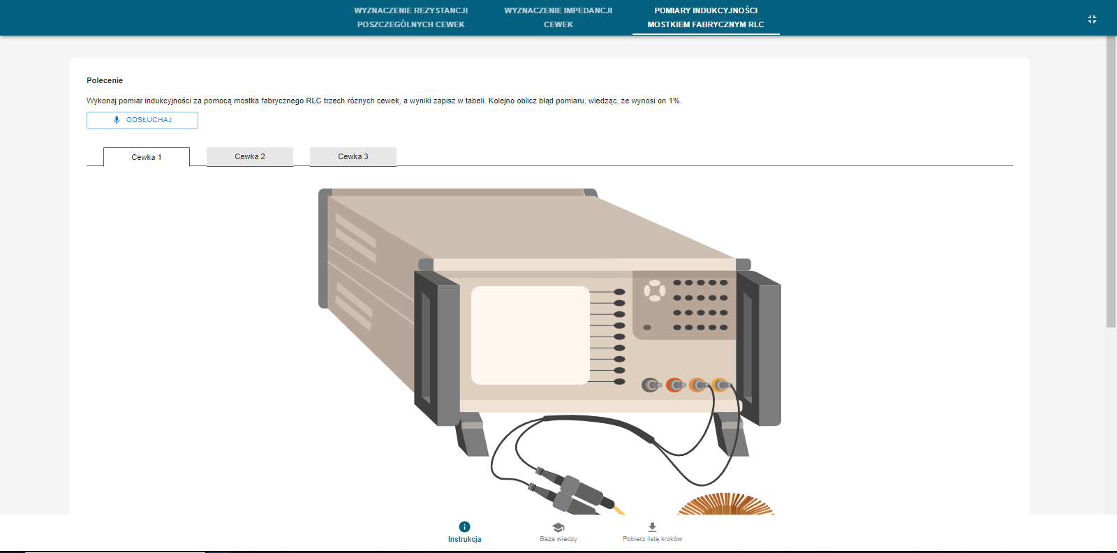 Korzystając z poniższych wzorów oraz pomiarów zawartych w tabeli, oblicz wartość reaktancji i impedancji dla 3 różnych cewek. Wyniki zaokrąglij do dwóch miejsc po przecinku.