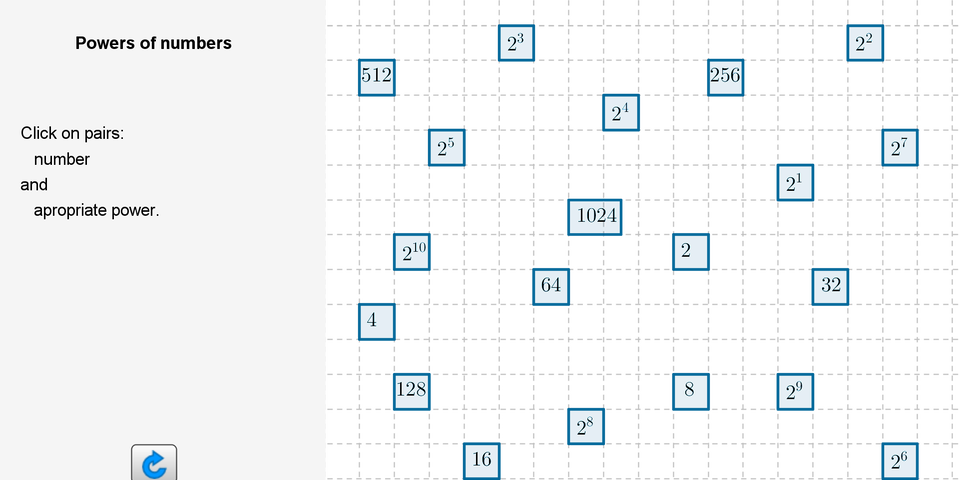 Geogebra aplet - Potęgi liczby 2, 3, 5. Galeria z opisami alternatywnymi poniżej.
