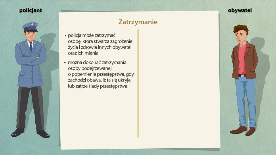 Animacja przedstawia prawa i obowiązki policjanta oraz obywatela.
