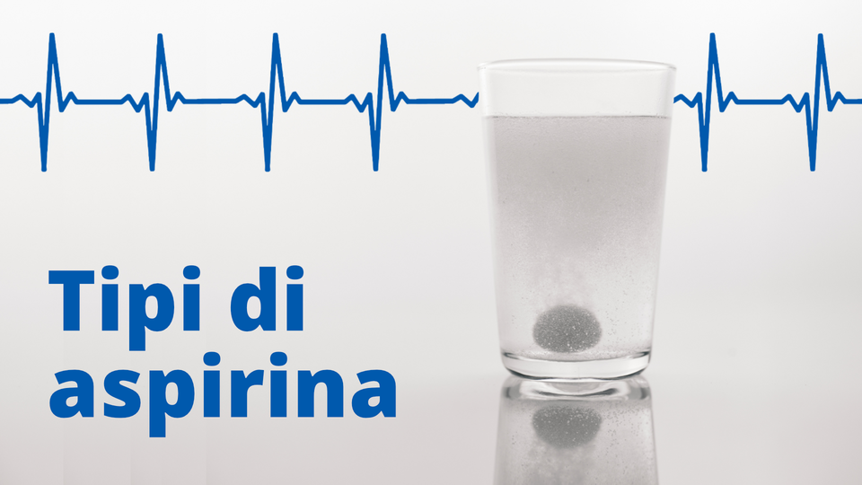 Tipi di aspirina | Slajd zawiera krótki filmik. Na filmie widoczna jest szklanka z wodą, do której wrzucona jest musująca tabletka. Tabletka rozpuszcza się. W tle charakterystyczna grafika z linią bijącego serca. | L'Aspirina è un analgesico, un antinfiammatorio e un antipiretico. Compresse, Granulato con vitamina C, Compresse masticabil. |