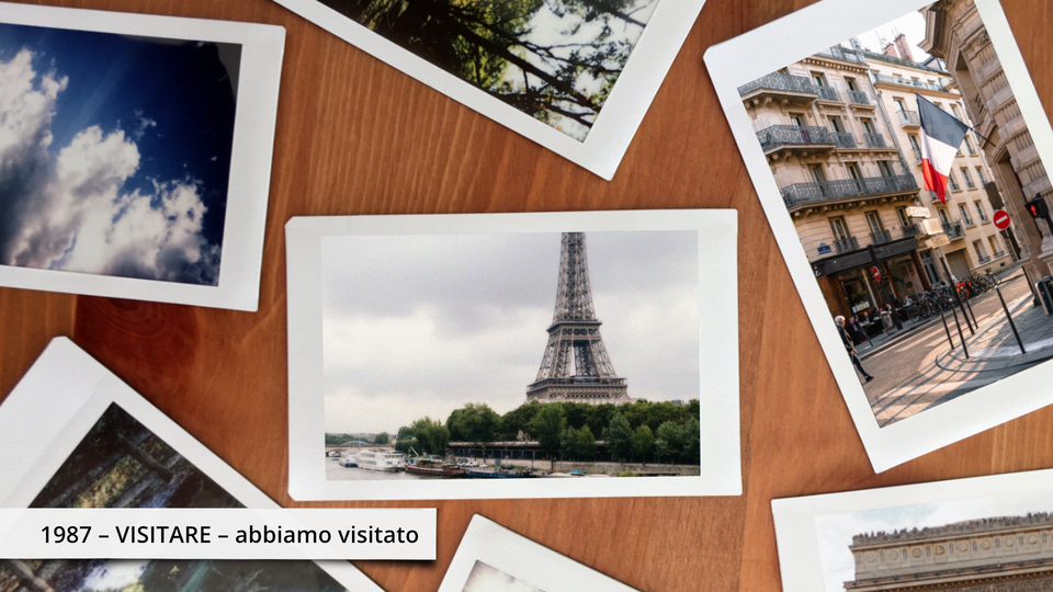 Ilustracja przedstawia krótki film przedstawiający wieżę Eiffla w Paryżu. Obok widoczne są inne zdjęcia z Francji oraz napis: 1987 – VISITARE – abbiamo visitato.