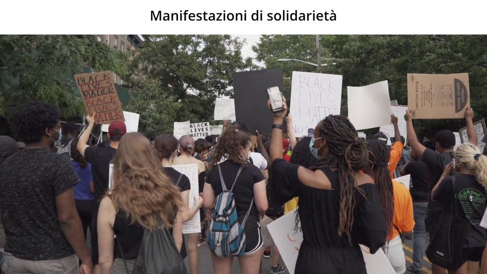Manifestazioni di solidarietà | Na slajdzie znajduje się krótki filmik przedstawiający młodych ludzi uczestniczących w demonstracji/proteście. Niektórzy trzymają wysoko uniesione plakaty z hasłami. | Anche i cittadini europei si mobilitano per dimostrare la loro solidarietà a volte durante manifestazioni o eventi organizzati nelle giornate internazionali, per esempio l’8 marzo, il 21 marzo, il 17 maggio, il 9 novembre, il 1°, il 3 e il 10 dicembre. Conosci queste date? |