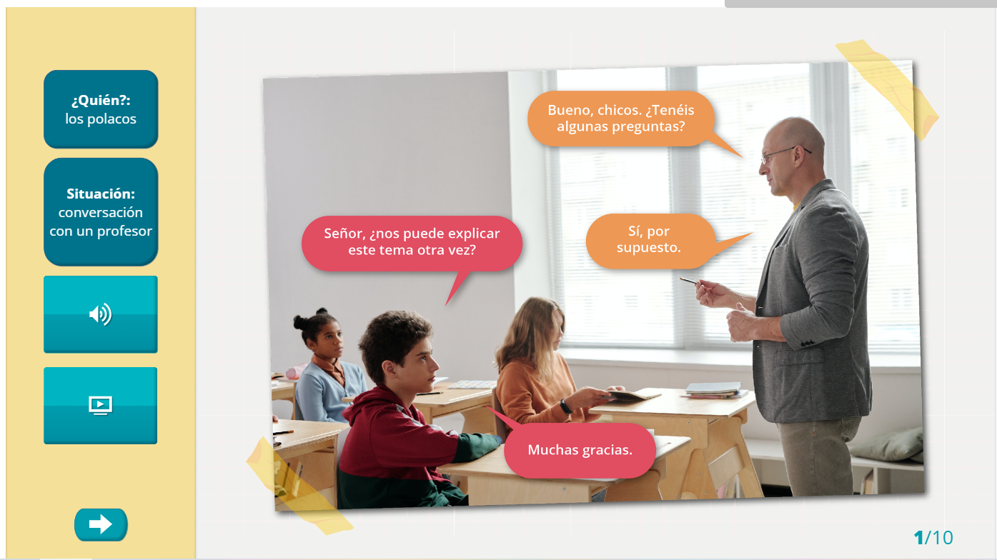 Nagranie dźwiękowe: Los alumnos polacos siempre tratan de usted a sus profesores. De este modo, les muestran respeto.