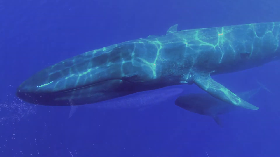 Krótki film przedstawia pływającego płetwala błękitnego. Widoczna jest jego ogromna sylwetka. Widoczne są jego dwa otwory nosowe, mała płetwa grzbietowa i duża płetwa ogonowa z wyraźnym wcięciem pośrodku. Płetwal pływa w akwenie z błękitno‑niebieską wodą..