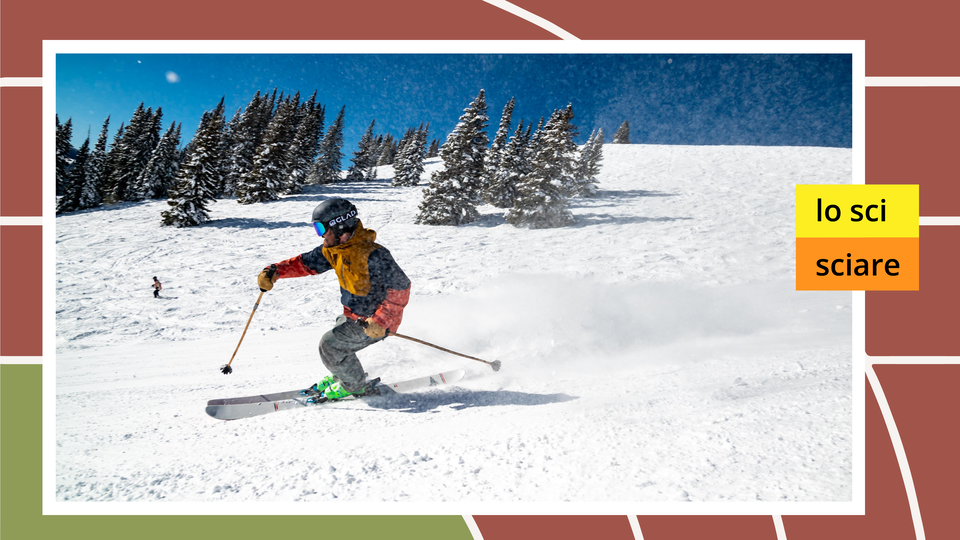 7 | Ilustracja przedstawia narciarkę zjeżdżającą na nartach na stoku. | lo sci, sciare | Sofia Anna Vittoria Goggia è una sciatrice italiana, campionessa olimpionica del 2018. |