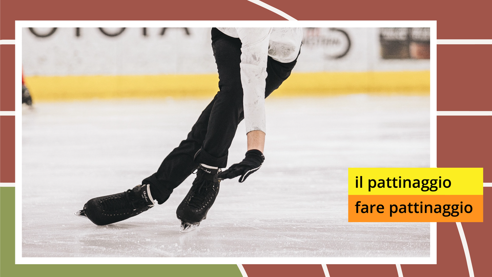 8 | Ilustracja przedstawia zbliżenie na nogi łyżwiarza szybkiej na torze. | il pattinaggio, pattinare | Nicola Tumolero è un pattinatore su ghiaccio italiano, medaglia di bronzo nel 2018. |