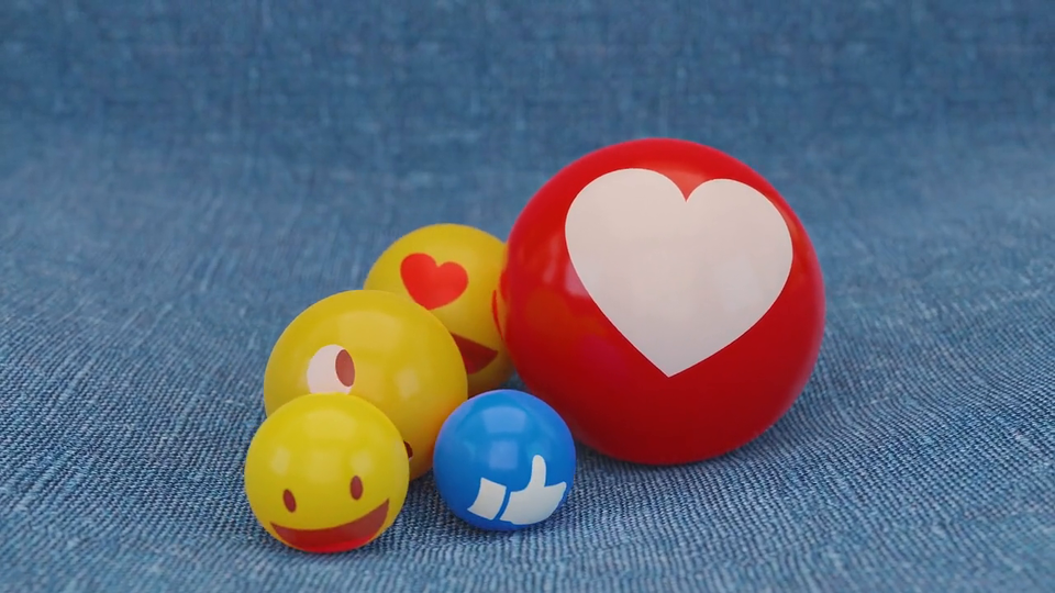 Krótki filmik przedstawia baloniki z emotikonami spadające na sprężynującą niebieską tkaninę. Po odbiciu się od tkaniny kuliste baloniki nabierają powietrza i osiadają na tkaninie. Widoczne są trzy żółte kule z szerokim uśmiechem, smutną miną i czerwonym serduszkiem; duża, czerwona kula z białym serduszkiem; i mała, niebieska kula z białą dłonią z kciukiem w bok.