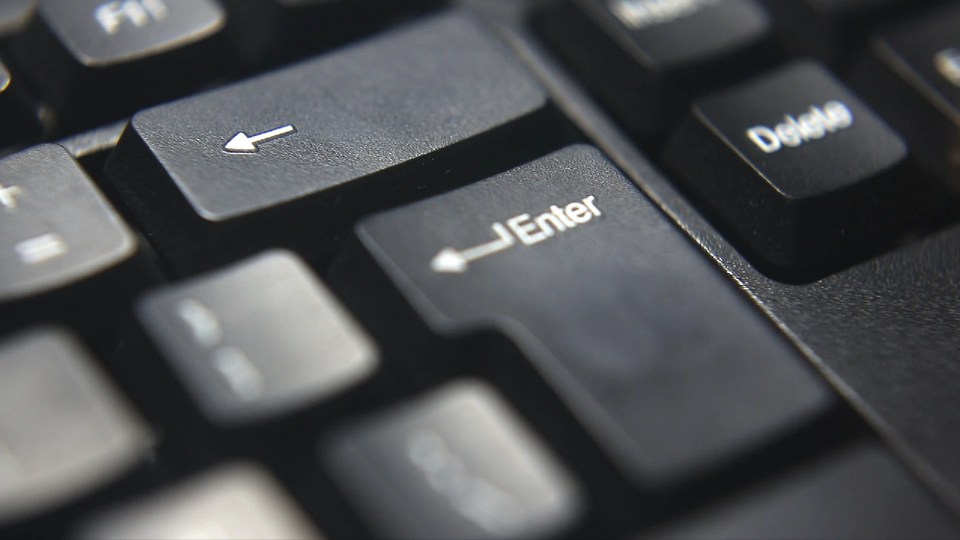 Krótki filmik przedstawia zbliżenie na czarną klawiaturę komputera. Widoczny jest palec wskazujący, który najpierw zbliża się do klawisza ENTER, a następnie dotyka klawisza ze strzałką w lewo, aby ponownie zatrzymać się nad klawiszem ENTER i w końcu kliknąć klawisz ze strzałką w lewo.