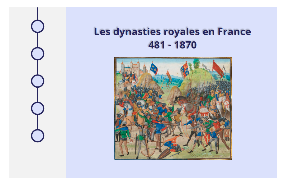 Découvre les différentes dynasties des rois et empereurs qui ont régné sur le Royaume français depuis l'an 481 jusqu’à la proclamation de la République française, le 4 septembre 1870.