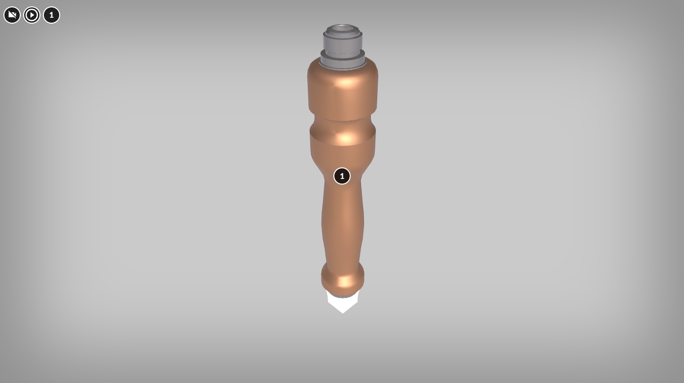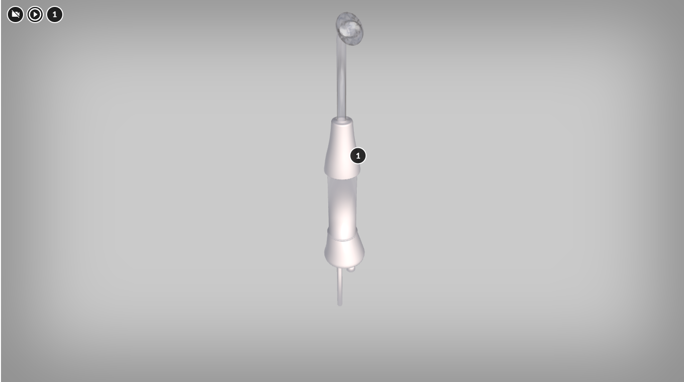 Wizualizacja zatytułowana jest Darnsowal W centrum znajduje się podłużne urządzenie złożone z rękojeści i przezroczystej końcówki z rozszerzoną, okrągłą głowicą na końcu. Na ilustracji znajduje się punkt interaktywny, po kliknięciu którego pojawia się ramka z tekstem.