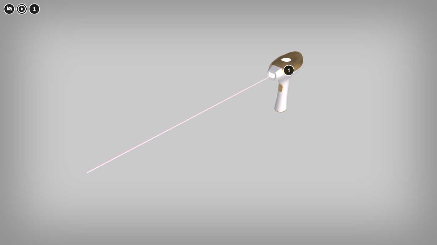 Wizualizacja przedstawia laser, czyli urządzenie emitujące wąską wiązkę światła o dużej intensywności. Oddziałując na skórę powoduje wytworzenie ciepła w tkankach, które na drodze tzw. selektywnej fototermolizy powoduje cieplne uszkodzenie cebulek włosa, ścian naczyń krwionośnych, komórek barwnikowych – melanocytów, włókien tkanki łącznej itd. Laser wysokoenergetyczny jest więc wykorzystywany do trwałego usuwania owłosienia, fotoodmładzania, rozjaśniania przebarwień, zamykania naczyń krwionośnych.