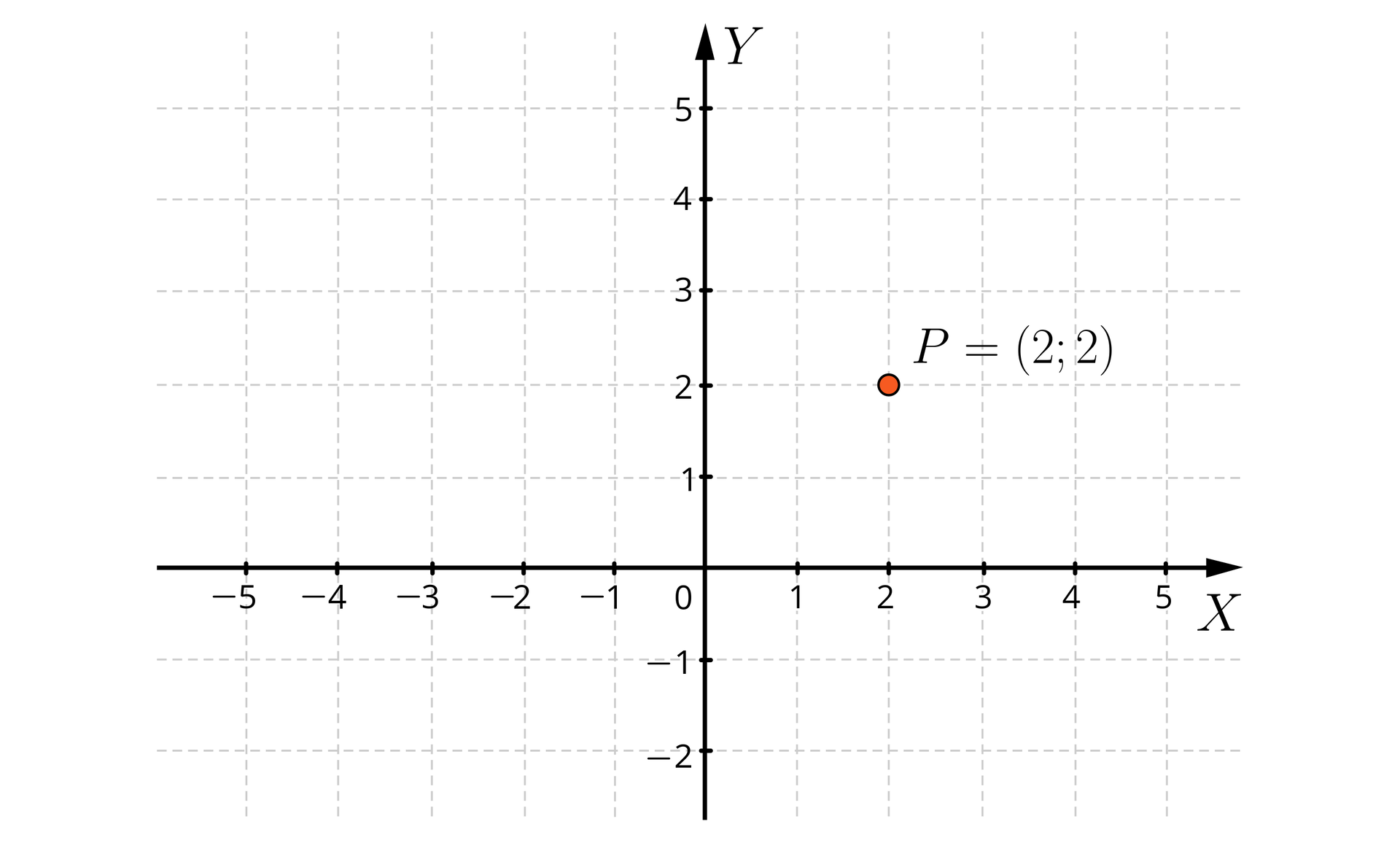 Współrzędne punktu : pierwsza współrzędna to , a druga to . Zapisujemy .