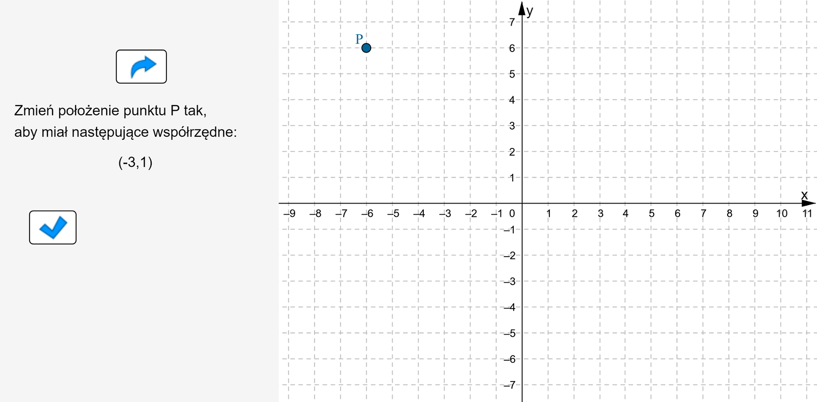 W układzie współrzędnych ustaw punkt tak, aby miał dane współrzędne.