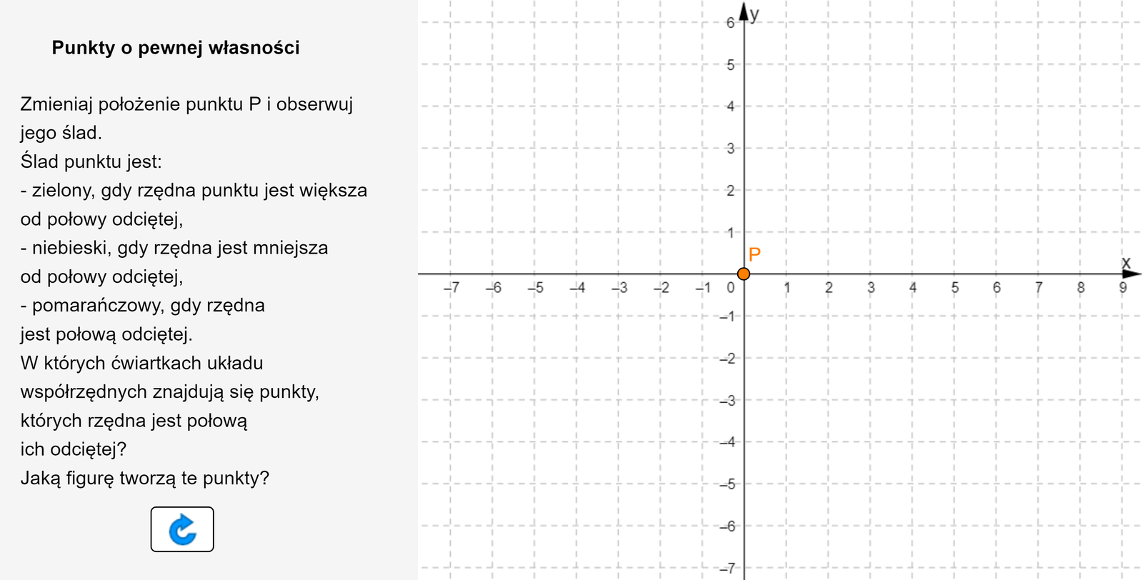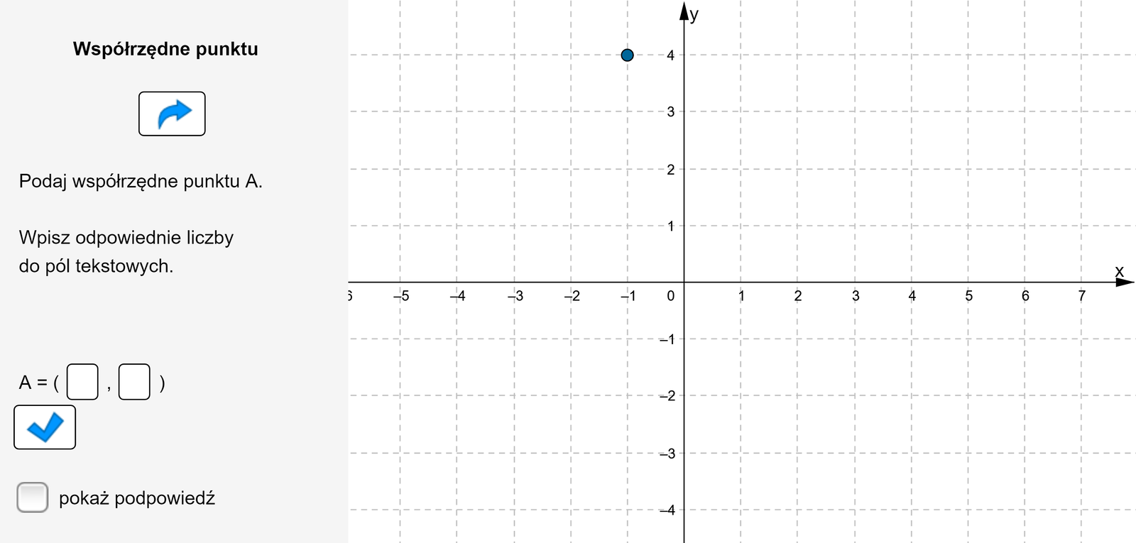 Zmieniaj położenie punktu zaznaczonego w układzie współrzędnych.