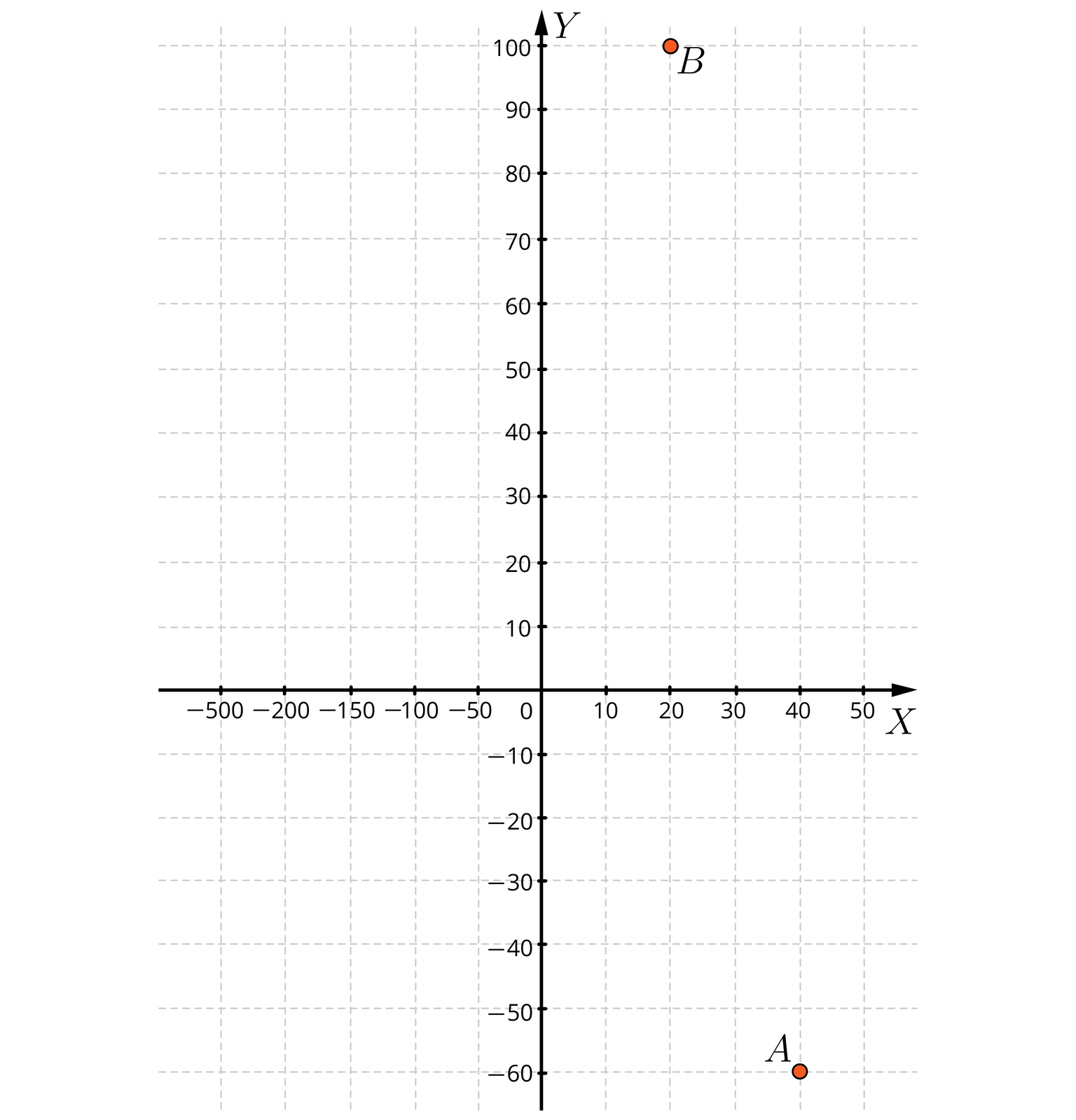 Narysuj układ współrzędnych; dobierz odpowiednio jednostkę i zaznacz punkty i .
