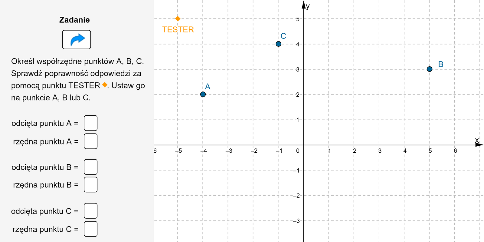 Podaj współrzędne punktów , oraz i sprawdzaj ich poprawność za pomocą testera.