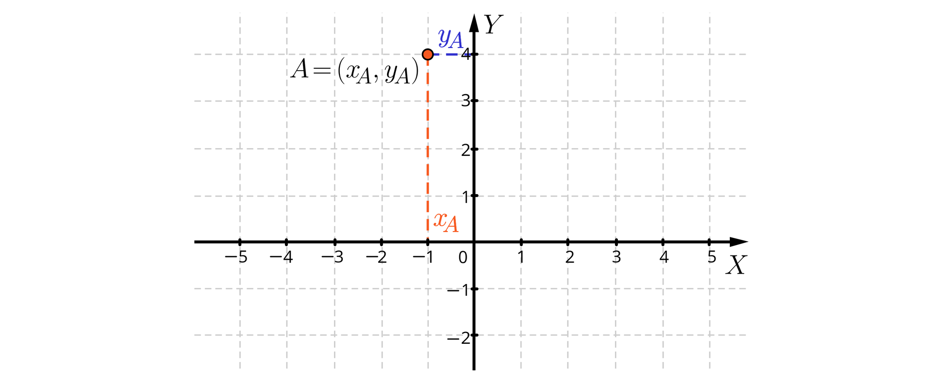Pierwsza współrzędna określa położenie punktu względem osi , a druga – względem osi .