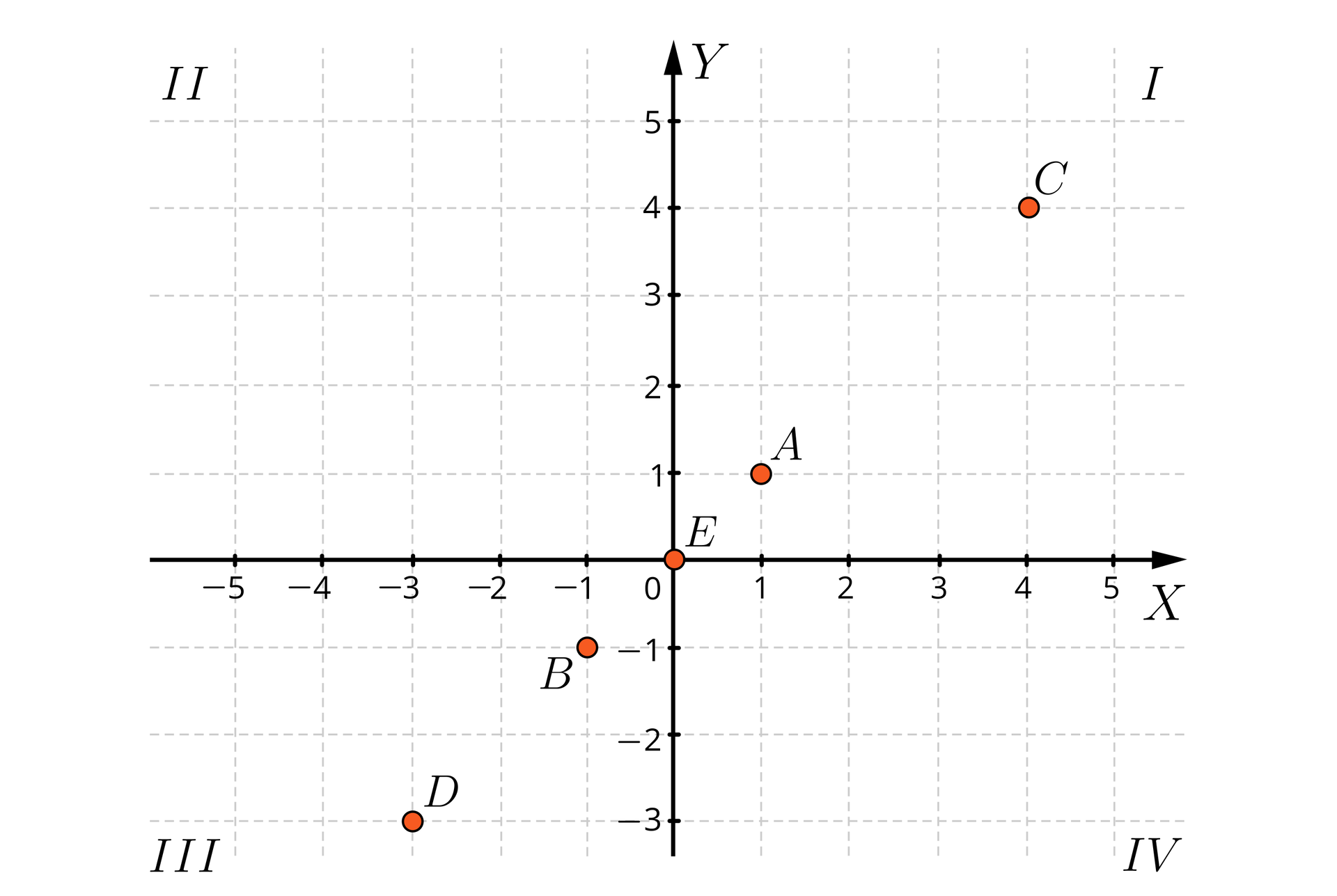 Każdemu punktowi zaznaczonemu w układzie współrzędnych odpowiada uporządkowana para liczb nazywanych jego współrzędnymi.