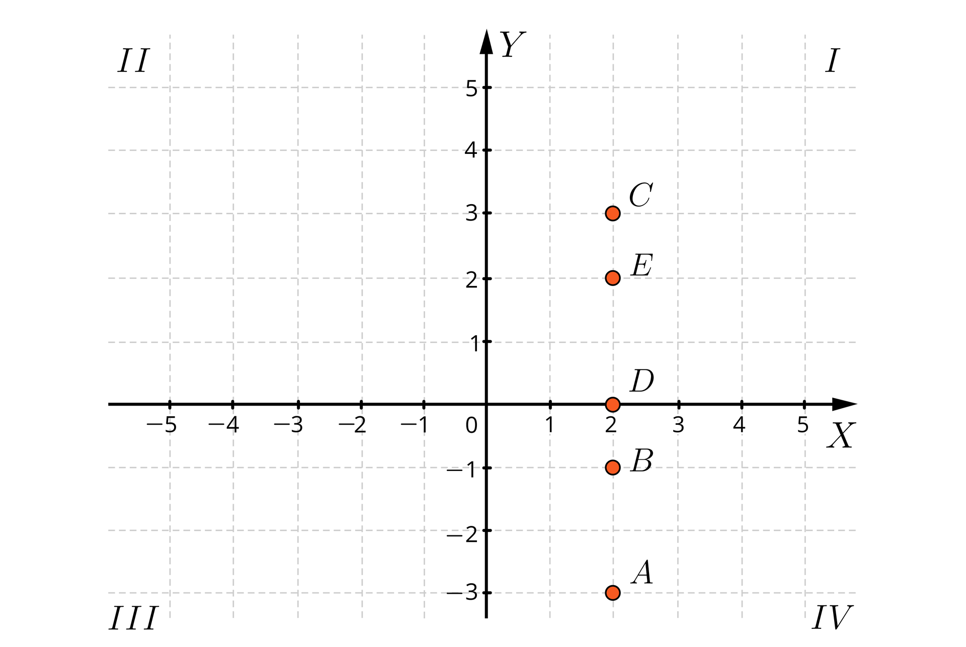 W układzie współrzędnych zaznaczone są punkty leżące na osiach układu.