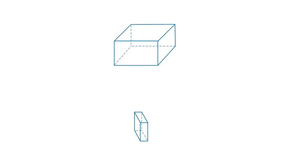 Animacja 3D pokazuje dwie różne siatki prostopadłościanu, które składają się w jednakowe prostopadłościany. Prostopadłościan zmienia się w kolumnę, która stoi obok innych kolumn.
