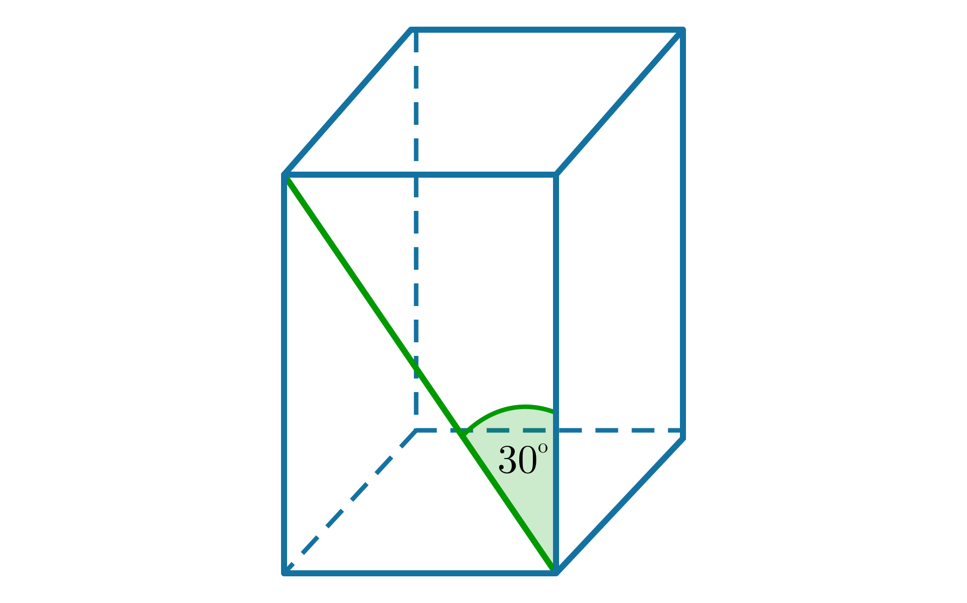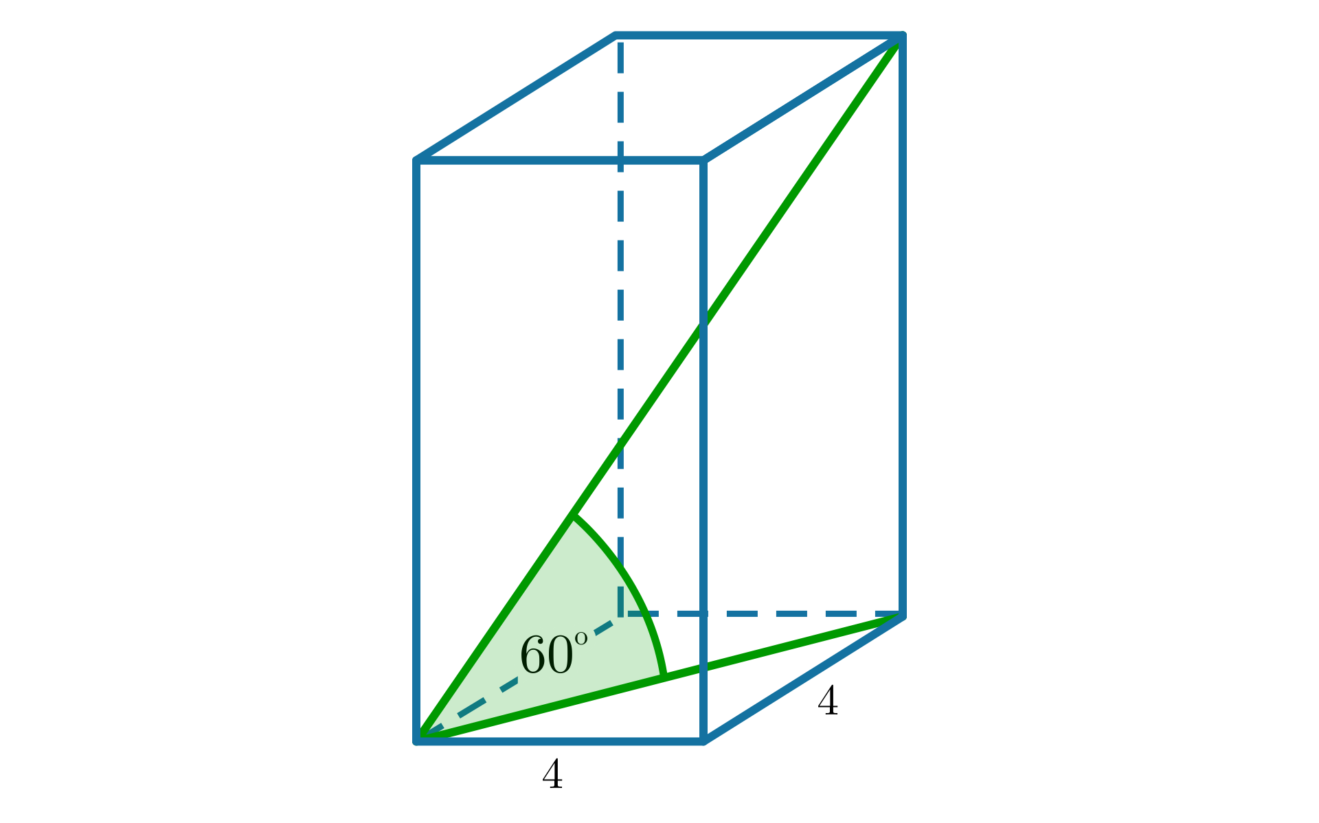 Na rysunku znajduje się prostopadłościan, który w podstawie ma prostokąt o wymiarach na . W prostopadłościanie zaznaczona jest jego przekątna, która ma długość . Przekątna prostopadłościanu tworzy z jego krawędzią boczną równą oraz z przekątną podstawy równą trójkąt prostokątny, gdzie przekątna prostopadłościanu jest przeciwprostokątną.