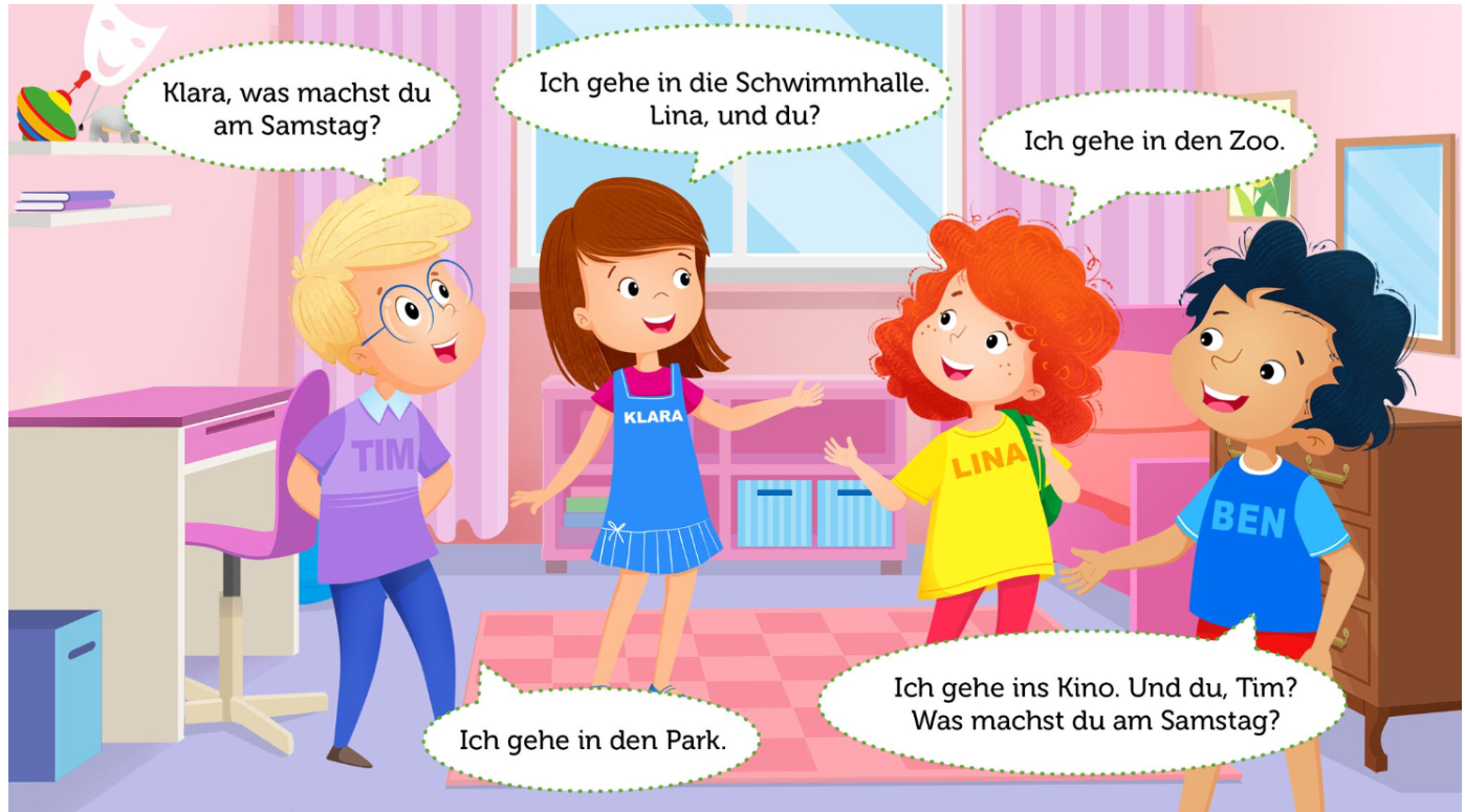 Jest czwartek. Dzieci właśnie skończyły oglądać kreskówkę u Klary. Przed wyjściem pytają się o plany na weekend.Jest czwartek. Dzieci właśnie skończyły oglądać kreskówkę u Klary. Przed wyjściem pytają się o plany na weekend.