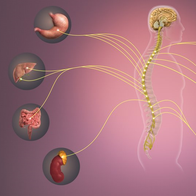 1. Rdzeń kręgowy jest przewodem biegnącym w kanale kręgowym. Odchodzą od niego nerwy rdzeniowe. W odróżnieniu od budowy wewnętrznej mózgowia w przekroju rdzenia kręgowego istota szara leży centralnie, a istota biała – zewnętrznie. Rdzeń kręgowy odpowiada za przekazywanie sygnałów nerwowych z ciała (narządów wykonawczych) do mózgowia i odwrotnie. Kontroluje też odruchy bezwarunkowe.