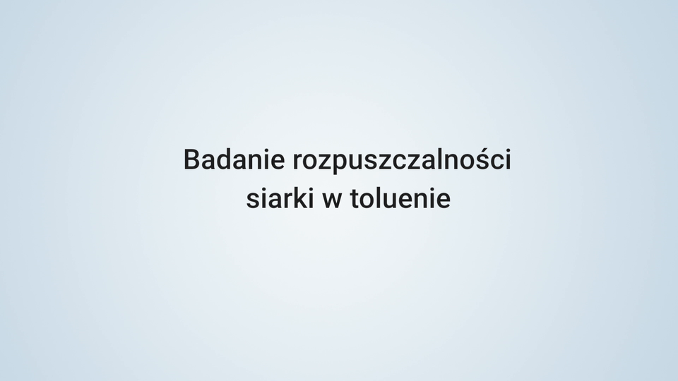 Film nawiązujący do treści materiału dotyczącej badania rozpuszczalności siarki w toluenie.