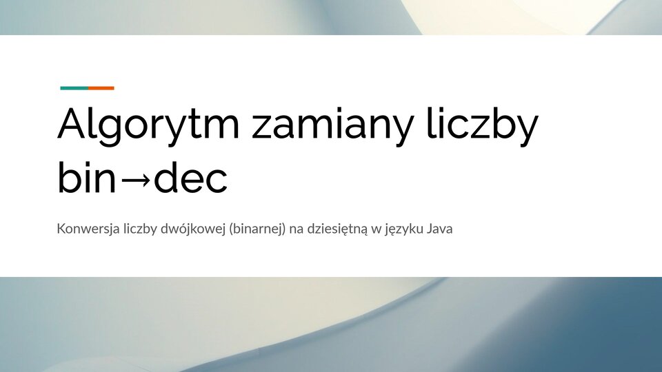 Linia 1. public static int konwertujBinDec otwórz nawias okrągły String liczbaBin zamknij nawias okrągły otwórz nawias klamrowy.