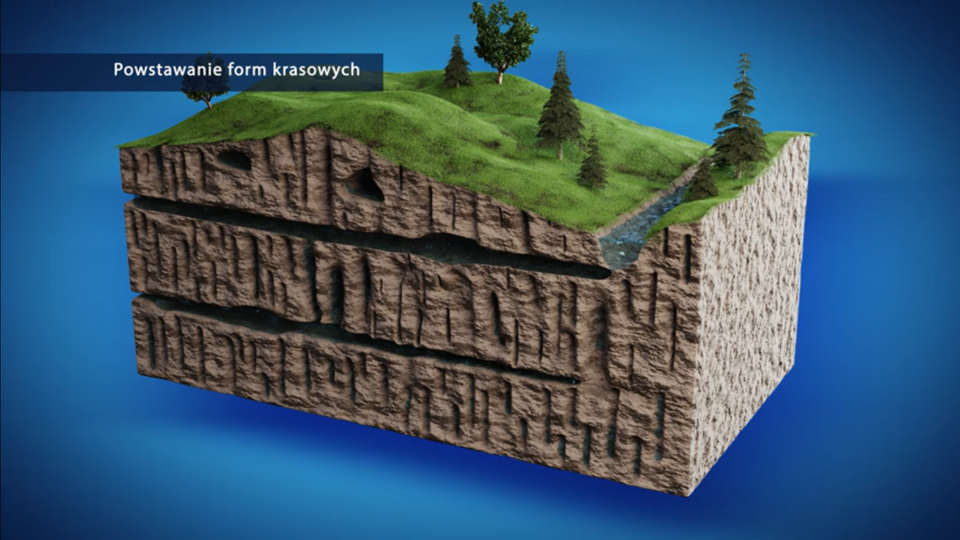 Poniższa animacja przedstawia mechanizm powstawania form krasu powierzchniowego oraz podziemnego.
