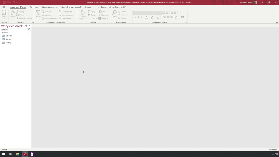 Lekarze.zipW bazie danych znajdują się zaimportowane tabele: