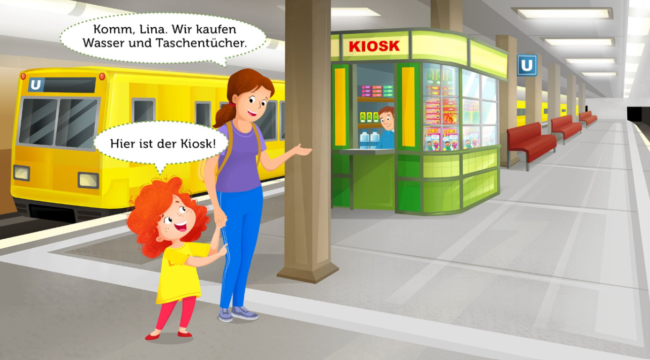 Lina i jej mama czekają na stacji metra na swój pociąg. Co zamierzają zrobić przed jego przyjazdem?Lina i jej mama czekają na stacji metra na swój pociąg. Co zamierzają zrobić przed jego przyjazdem?