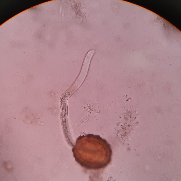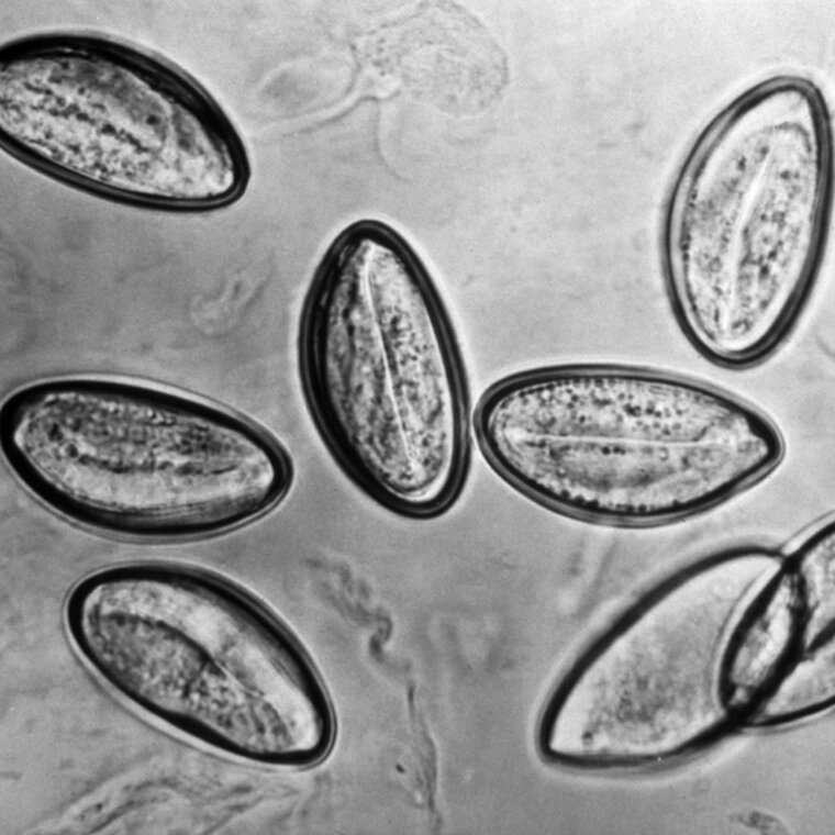 W badaniu mikroskopowym kału ocenia się obecność cyst pierwotniaków, jaj i postaci dorosłych pasożytów. Pobrany materiał może służyć do wykonania odpowiedniego barwienia, ułatwiającego analizę i poszukiwanie specyficznych białek.