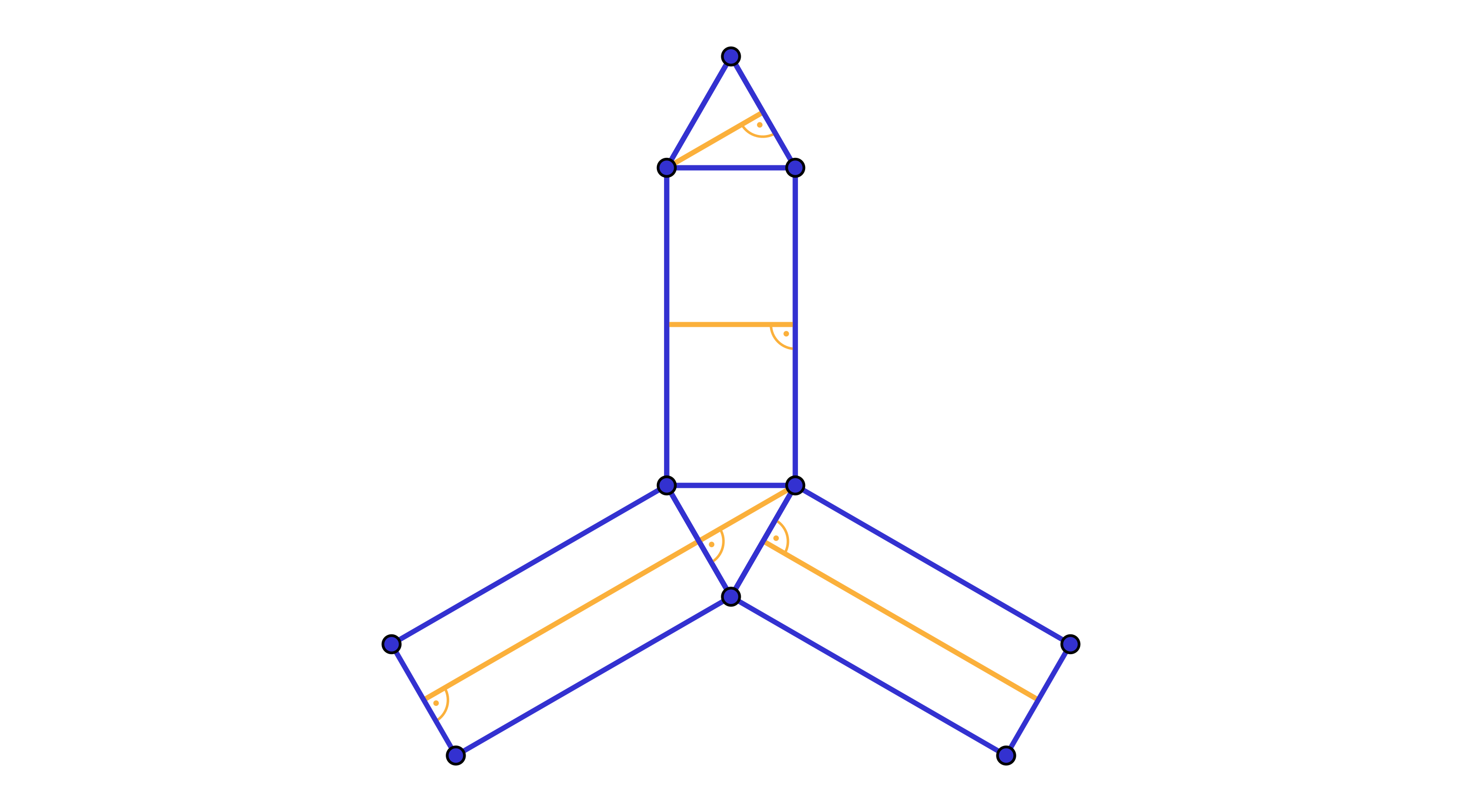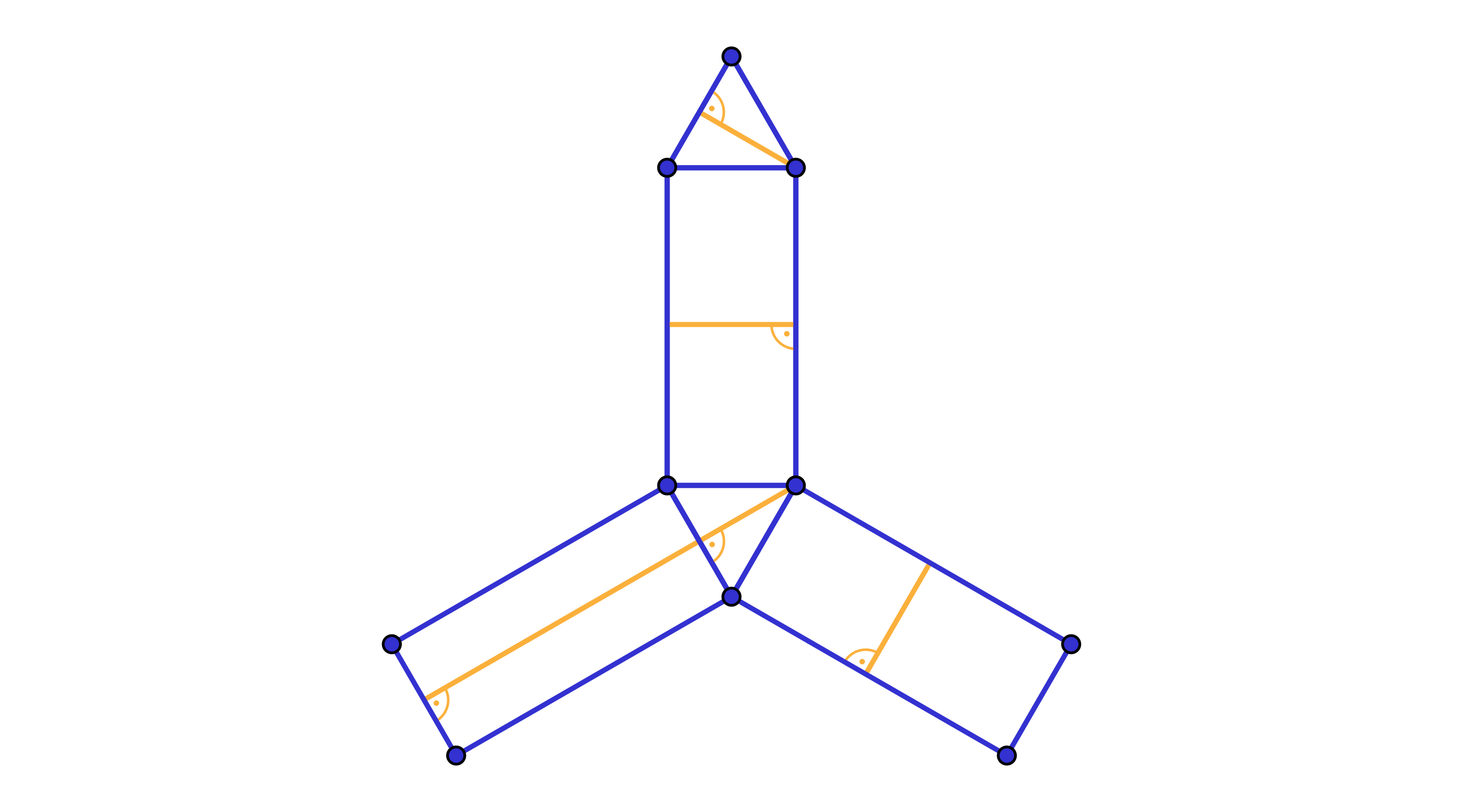 Rysunek 1 przedstawia prawidłową siatkę. Po sklejeniu schemat odcinków na siatce odpowiada wyjściowemu schematowi odcinków na graniastosłupie.