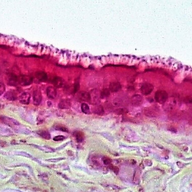 Nabłonek wielowarstwowy płaski ![]() | – komórki ułożone w wielu warstwach spłaszczające się w miarę oddalania od błony podstawnej | powierzchnia ciała kręgowców, rogówka oka, jama gębowa, odbyt, pochwa |