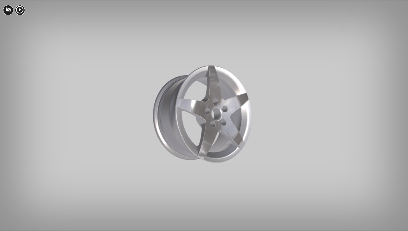 Wizualizacja 3D przedstawia felgę aluminiową z pięcioma żebrami. W centralnej części miejsca łączenia żeber znajduje się otwór pozwalający na zamocowanie na piaście koła. W niewielkiej odległości od niego, na każdym żebrze znajduje się mniejszy otwór, który pozwala na zamocowanie felgi.
