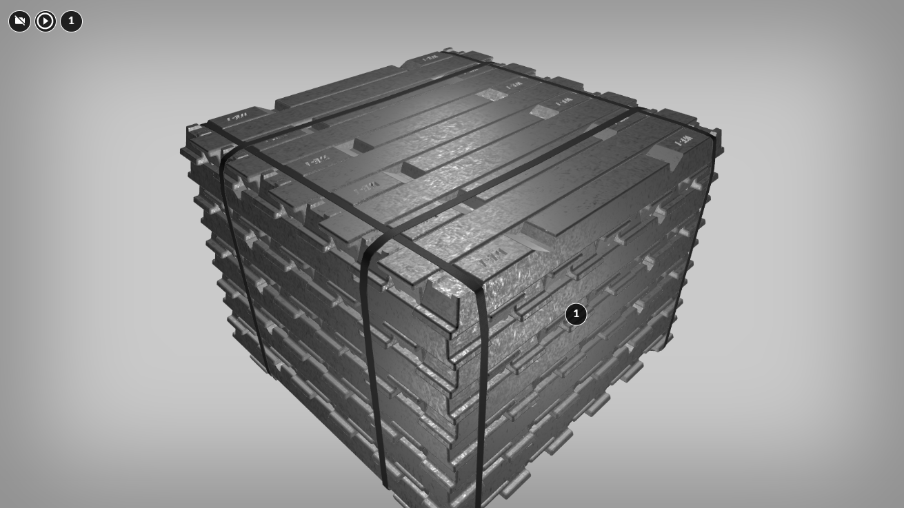 Opis ilustracji: Ilustracja przedstawia stos gąsek aluminiowych. Są to srebrzyste podłużne prostopadłościany z dwoma wcięciami w powierzchni. Są one ułożone jeden na drugim jak klocki. Całość wzmacniają cztery pasy zaciskające.
