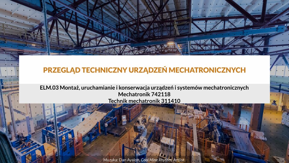 Film edukacyjny pt. Przegląd techniczny urządzeń mechatronicznych dla klasyfikacji ELM.03 Montaż, uruchamianie i konserwacja urządzeń i systemów mechatronicznych, zawód Mechatronik kod zawodu 742118, zawód technik mechatronik kod zawodu 311410