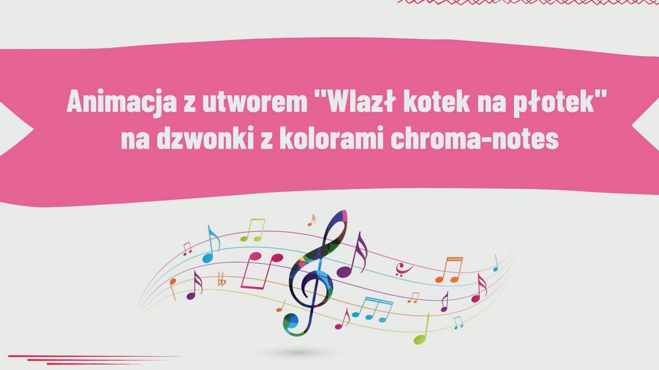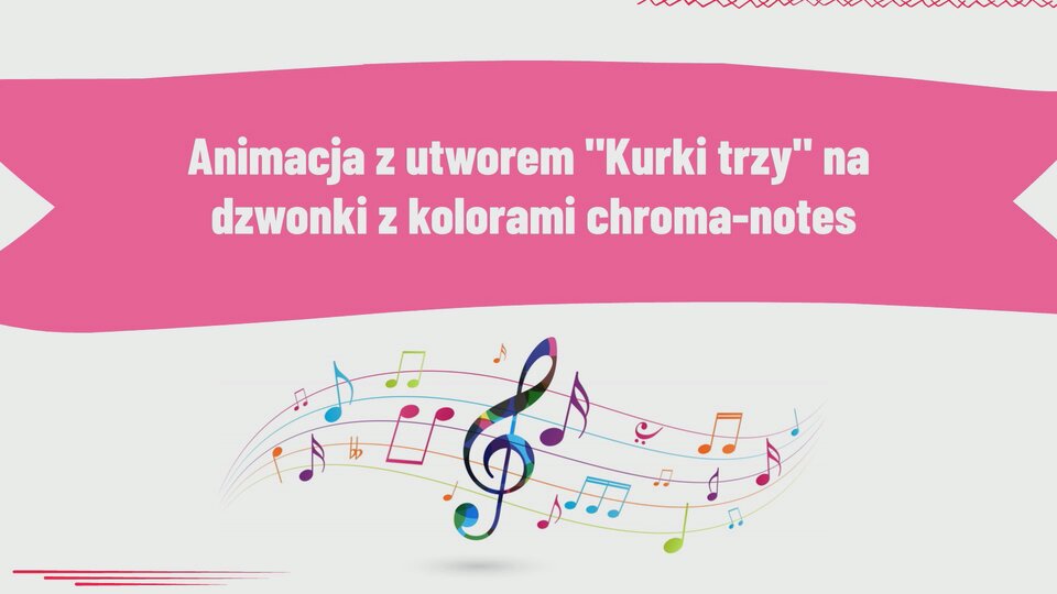 Animacja z utworami „Wlazł kotek na płotek” i „Kurki trzy” na dzwonki z kolorami chroma‑notes [czytaj: kroma nołts]