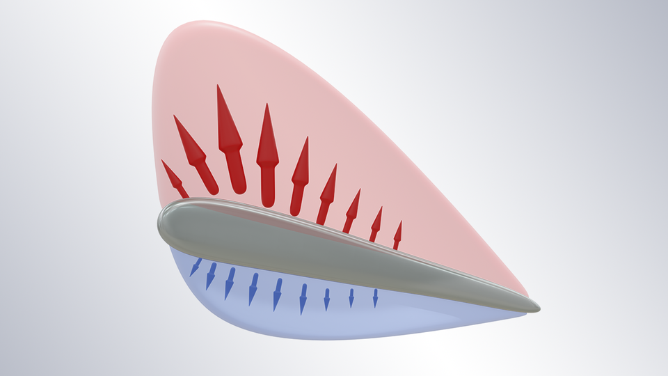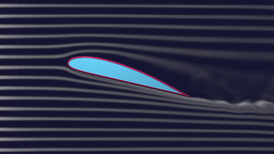 to wizualizacja przedstawiająca powstawanie siły nośnej na płacie profilu lotniczego. Materiał Wirtualne laboratoriumSymulacja zjawisk związanych z przepływem płynów