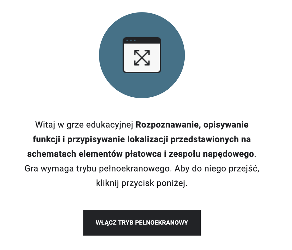 Gra edukacyjna „Rozpoznawanie, opisywanie funkcji i przypisywanie lokalizacji przedstawionych na schematach elementów płatowca i zespołu napędowego statku powietrznego”