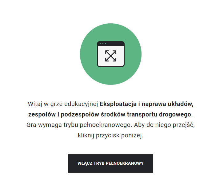Interaktywne narzędzie typu scenario‑based learning „Eksploatacja środków transportu drogowego”Interaktywne narzędzie typu scenario‑based learning „Eksploatacja środków transportu drogowego” — w tej grze wcielisz się w postać kierowcy mechanika, który musi wskazać, jakie elementy budowy pojazdu mogą odpowiadać za określone usterki. Będziesz miał do wyboru trzy moduły tematyczne: