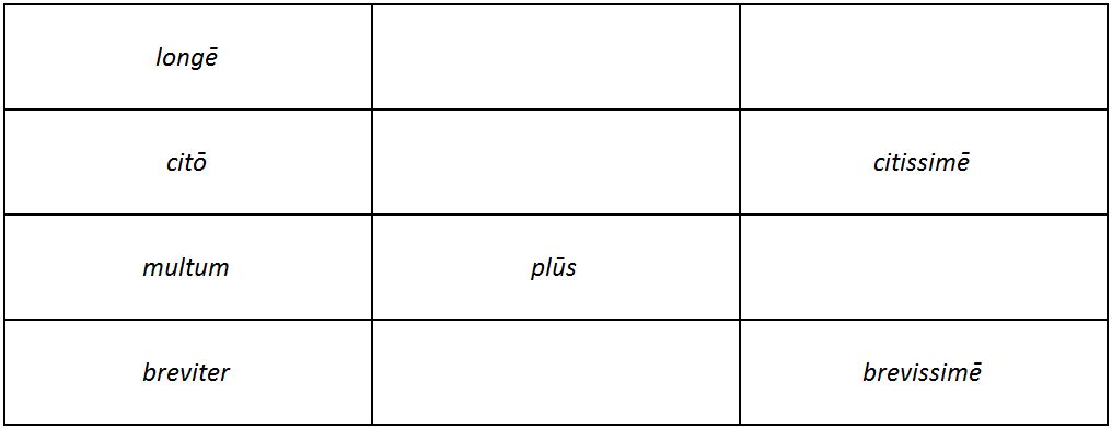 rārius, beātius, miserrimē, minus, lentissimē, lentius, beātissimē