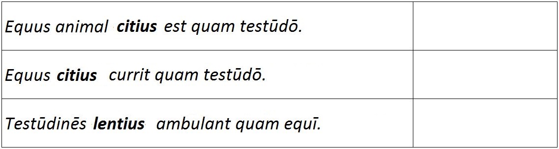 Ambulatne testūdō citius equō? Nōn, testūdō ........................ ambulat quam equus.