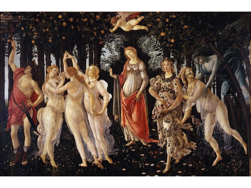 Botticelli otrzymuje wiele zamówień na obrazy religijne i o tematyce świeckiej. Z tego okresu pochodzi Primavera (Wiosna), który powstał na zamówienie Lorenza di Pierfrancesco Medyceusza, kuzyna Wawrzyńca Wspaniałego. Botticelli inspirował się tekstami Owidiusza i Lukrecjusza, zwłaszcza poematem Stanze per la giostra di Giuliano de’Medici Angola Poliziana, który opisał trzy Gracje i Zefira, zakochanego w nimfie Chloris o po ślubie w imię miłości oddał jej władzę nad kwiatami: