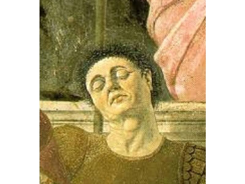 Poniżej widzisz fragment obrazu autorstwa Pierro della Francesca. Zamieszczony fragment dzieła jest częścią obrazu o nazwie: