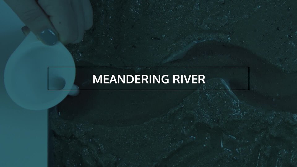 Film przedstawiający, jak w domowych warunkach można nauczyć się formowania biegu rzeki (meandering river). Należy skorzystać z piasku, wody, miski, lejka oraz deski. Wlewamy przez lejek wodę na piasek. Woda, która wylewa się z lejka pokazuje w jaki sposób rzeka meandruje i w jaki sposób tworzy się koryto rzeki.